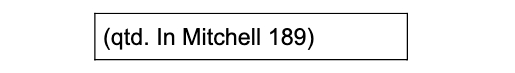 يتمّ توثيق الاقتباسات الواردة في المصدر الأصلي المأخوذة كما هي من خلال استخدام كلمة "qtd" قبل اسم المؤلف. كما هو موضّح في المثال أدناه: