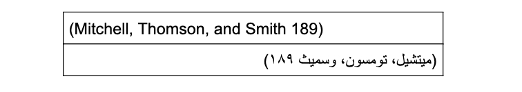 - في حال كان هنالك مؤلفان أو ثلاثة يتمّ ذكر الأسماء الأولى جميعًا متبوعة برقم الصفحة كما هو موضّح في المثال التالي: