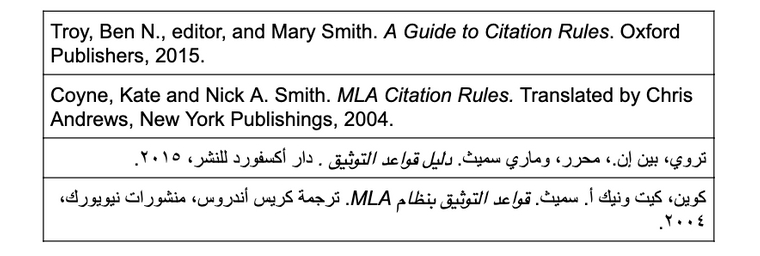 - يتم إضافة اسم المترجم أو المحرّر بعد أسماء المؤلفين. وذلك في حال كان موضوع بحثك يركّز على الترجمة والتحرير.
