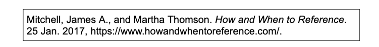 يتمّ توثيق هذا النوع من المراجع بطريقة مختلفة بعض الشيء. حيث أنّ صيغة التوثيق تكون كالتالي: