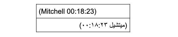 في حال اللجوء إلى مصادر مرئية أو مسموعة كمقاطع الفيديو مثلاً، يجب تحديد وقت المقطع الذي تمّ الإشارة إليه في البحث بدلاً من رقم الصفحة، بحيث يكون بالصيغة التالية