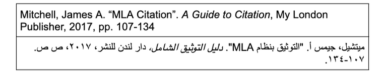 لاحظ الأمثلة التالية لتوثيق فصل من كتاب حسب نظام MLA: