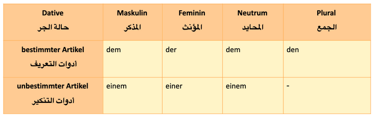 ثالثا: حالة الجر في اللغة الألمانية der Dativ