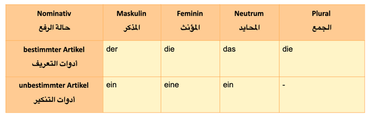 اقرأ أيضًا: أدوات التعريف في اللغة الألمانية