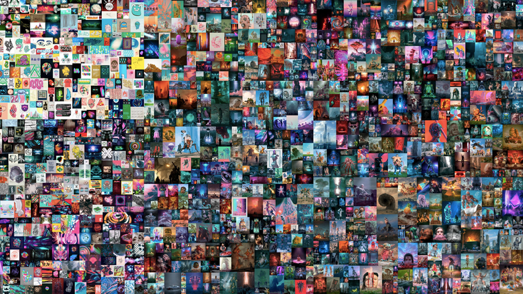 هذه اللوحة بعنوان Beeple’s “Everydays: The First 5000 Days”، تعدّ واحدة من أشهر رموز الـ NFT التي بيعت بمبلغ يقدّر بـ 69 مليون دولار أمريكي. وهي عبارة عن لوحة تضمّ جميع الصور التي نشرها الفنان عبر الإنترنت منذ عام 2007.