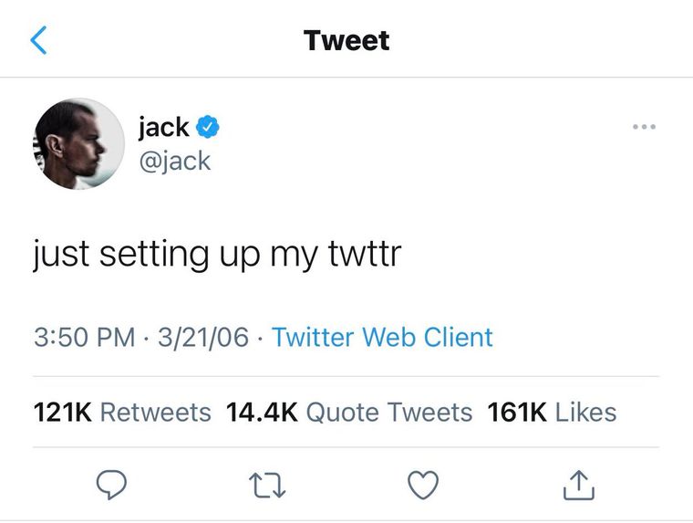 تمّ بيع أول تغريدة في التويتر بـ2.5 مليون دولار أمريكي كرمز غير قابل للاستبدال، وهي تغريدة لشخص اسمه جاك قال فيها: “just setting up my twttr”، أيّ: "أقوم بإعداد حسابي على تويتر".