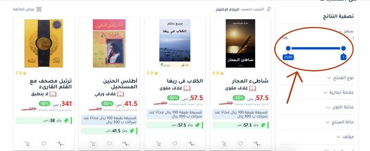 حيث يمكنك تحديد السعر الذي يناسبك بكل مرونة عبر تصفية النتائج أثناء عملية البحث داخل الموقع، كما هو موضّح في الصورة أدناه.