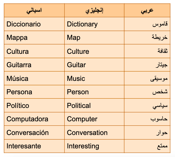 حتى من دون إتقان اللغة الإسبانية، يمكن لأي شخصٍ مبتدئ أن يحزر معاني هذه الكلمات بمجرّد سماعها أو رؤيتها.