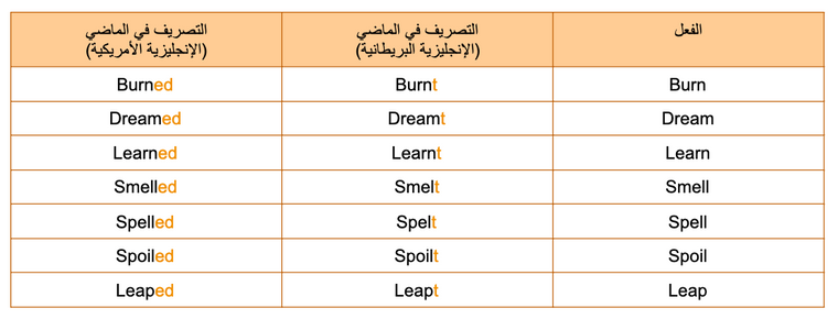 عند تصريف بعض الأفعال المنتظمة في زمن الماضي، يتمّ استبدال الحرفين "ed" بالحرف "t" في الإنجليزية البريطانية.